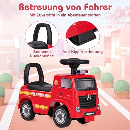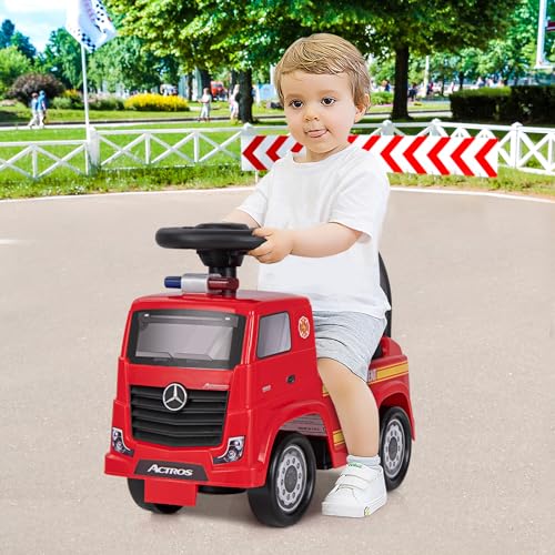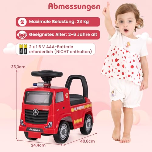 【Authentisches Mercedes-Benz Design】Lizenzierter von Mercedes-Benz, sorgt der Schiebetruck für ein authentisches und erstklassiges Erlebnis für Ihr kleines Abkomme. Der Feuerwehrauto-Stil mit lebendigem Armaturenbrett und Alarmlampe trägt zum Fahrspaß bei.