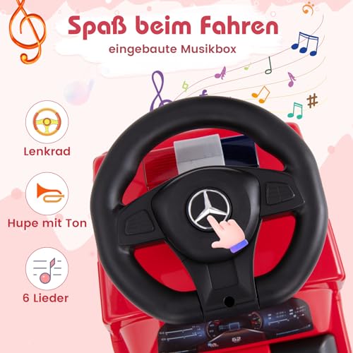 Verwandeln Sie die Spielzeit mit unserem Mercedes-Benz lizenzierten Feuerwehrauto-Fahrtspielzeug! Perfektioniert bis ins Detail, präsentiert es realistische Details wie ein auffälliges Armaturenbrett, das den Luxus von Mercedes-Benz widerspiegelt. Abenteuerlustige können entweder im Fuß-zu-Boden-Stil herumzoomen oder von achteraus eine Schubhilfe genießen, zumal sie zu 6 entzückenden Melodien vom musikalischen Lenkrad jammen. Brauchbar für ebene und sogar Oberflächen und mit einer Anti-Kipp-Mechanismus versehen, ist es furchtlos spaßig!