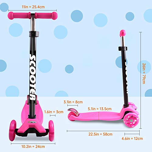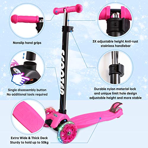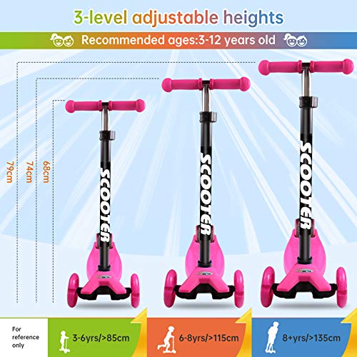 Artikel: Tretroller für Kinder von 3 bis 12 Jahren, Tretroller mit drei Rädern mit blinkenden LED-Lichtern und Lenker, höhenverstellbar, Scooter, 3 Räder, rutschfest, für Mädchen und Jungen