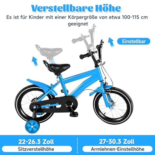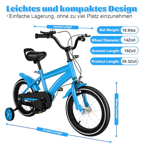Cutycaty Kinderfahrrad 14 Zoll Fahrrad, Jungen Mädchen Kinderfahrrad für ab 3-6 Jahre, Kinderfahrrad Tretfahrrad mit Stützräder Höhe Einstellen Kinder Fahrrad (Blau)
