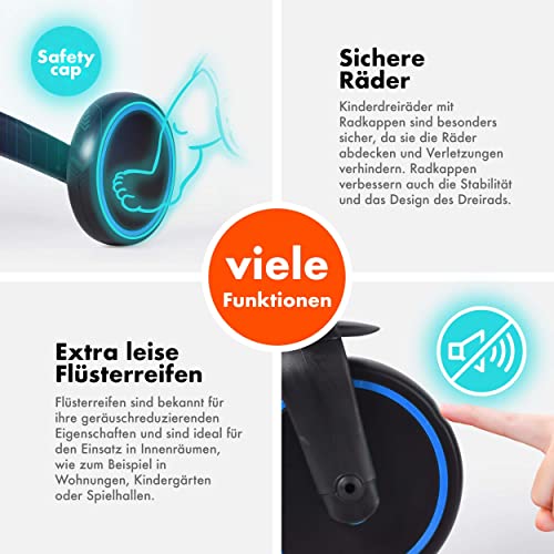 𝐅𝐥ü𝐬𝐭𝐞𝐫𝐫ä𝐝𝐞𝐫: Jeder Eltern kennen das Geräusch, wenn die Reifen nicht mehr da hartem Kunststoff über Asphalt und Pflaster kratzen. Beim Triciyo sind deshalb mit Flüsterreifen ausgerüstet. Diese bestehen nicht mehr da einer besonderen Gummimischung, die das Rollgeräusch deutlich dämpft.