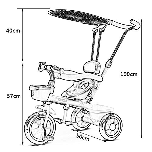 Design: Einstellbarer Sitz u0026 Klapppedal u0026 Einstellbare Schubstange u0026 Abnehmbares Hinterrad u0026 Zwei-Punkt-Sicherheitsgurt u0026 um 180 ° verstellbare Sonnenblende. (Es gibt eine Glocke, und die Drehung kann die Glocke läuten)