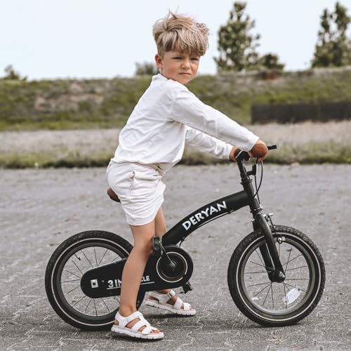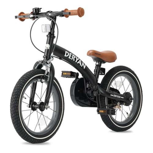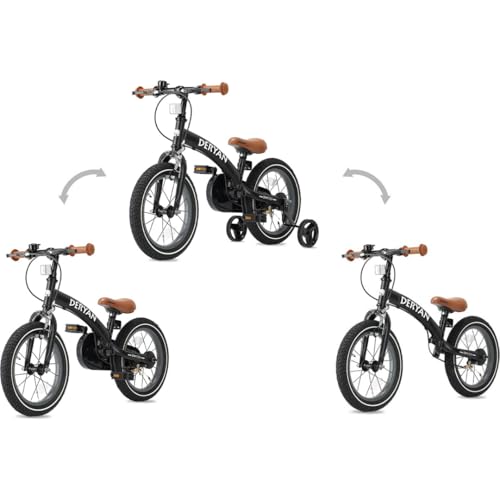 Deryan Luxus Kinderfahrrad 12 und 14 Zoll | 3 in 1 Laufrad | Fahrrad mit Verstellbarem Sattel und Lenker | Kinder Fahrrad für Jungen und Mädchen