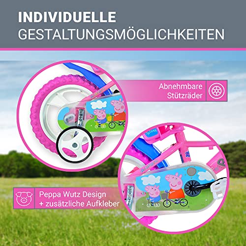 Dino Bikes – 12 Gebühr Kinderfahrrad Peppa Pig Pig – Mädchenfahrrad mit abnehmbaren Stützrädern ab 2 Jahren – Kinderfahrrad mit Frontkorb & Puppenträger – verstellbare Sattel- & Lenkerhöhe (rosa) MIT PUPPENTRÄGER & KORB: Lassen Sie Kinderaugen leuchten Hoch mit dem Peppa Pig-Fahrrad! Das Fahrrad verfügt über einen großen Puppenträger mit Riemen achteraus am Fahrrad und einen Korb vorne. Es ist für Kinder im Gefährte von 2 bis 5 Jahren sinnvoll. HÖHENVERSTELLBAR: Der große, bequeme Sattel und der Lenker sind höhenverstellbar. Das Kinderfahrrad verfügt alldem ungeachtet über verstellbare, kindgerechte Bremsgriffe und Sicherheitslenkergriffe mit Prellschutz. SICHERE FAHRT: Das rosa Fahrrad ist mit bunten Peppa Pig-Aufklebern verziert. Es ist mit einer Vorderradbremse und einem festen Hinterradsystem ausgestattet. Das kindgerechte Dauerpedal sorgt für eine sichere Fahrt ohne Freilauf. NICHT PLATTIERBARE REIFEN: Das Fahrrad verfügt über pannensichere EVA-Alt werden auf 12-Gebühr-MAG-Rädern mit Schutzblechen und abnehmbaren Stützrädern. Sämtliche Fahrradteile sind TÜV/GS geprüft. LEICHT & STABIL: Unsere Fahrräder kommen zu 90 % vormontiert und sind in wenigen Schritten einsatzbereit! Der leichte Fahrradrahmen verfügt über robuste Eigenschaften und eine hohe Haltbarkeit