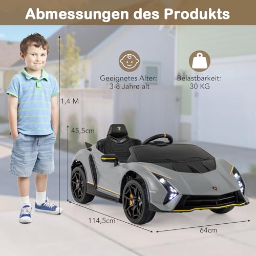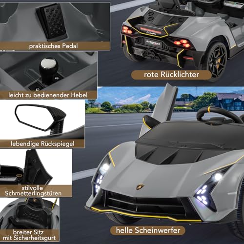Ausgezeichentes Lamborghini-Design – Dieses Kinderauto repliziert die Aufregung eines echten Autos mit seinem authentischen Design mit schlanken Linien, hydraulischen Türen, einem auffälligen Spoiler und LED-Scheinwerfern, die ein immersives Fahrerlebnis für Ihr Nachfahre bieten.