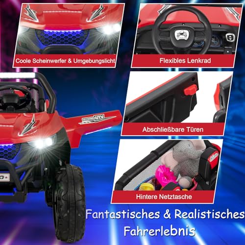 DREAMADE 12V 2 Sitzer Elektroauto für Kinder, Elektrofahrzeuge mit 2,4 Ghz Fernbedienung & Musik & Scheinwerfer & USB, Elektro Auto für Kinder ab 3 Jahren, bis zu 59 kg belastbar (Rot)