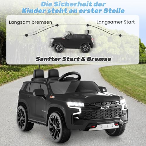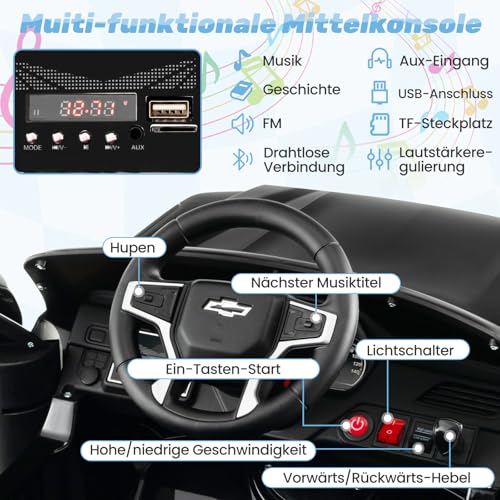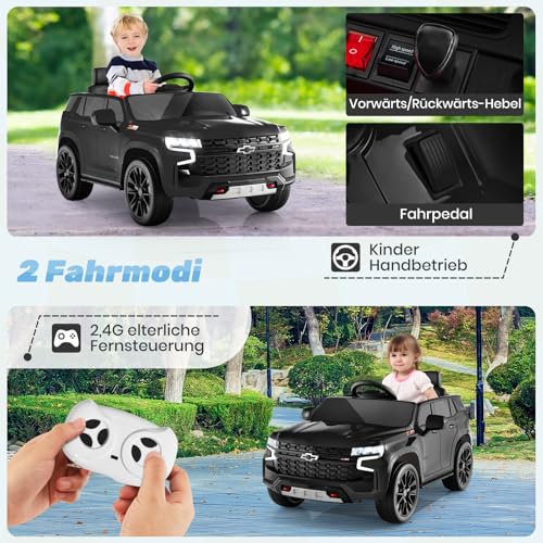 DREAMADE 12V Chevrolet Elektroauto für Kinder, Kinder Elektroauto mit Fernbedienung, Elektrofahrzeuge mit Federung & Musik & Licht & Hupe, elektrisches Auto für Kinder ab 3 Jahre (Schwarz)