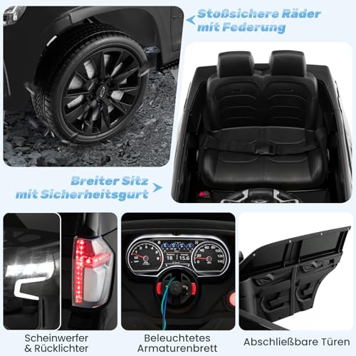 Mehrere freudige Funktionen – Mit LED-Digitalplayer, eingebauter Musik und Hupe bietet das Elektroauto für kinder zusätzlichen Spaß. Darüber hinaus ermöglichen die drahtlose Verbindung, AUX-Eingang, USB-Anschluss und TF-Slot den Kindern, die Musik zu genießen, die sie möchten.