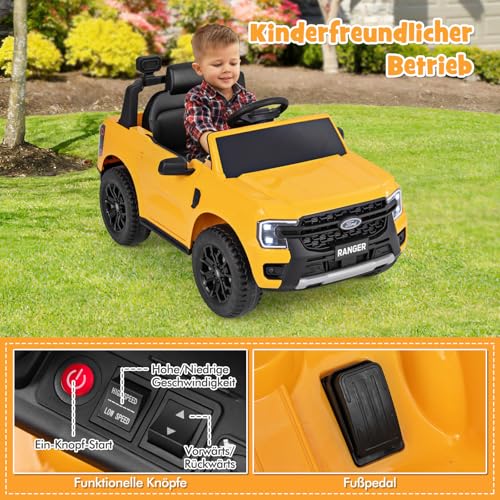 Starke Leistung – Mit 2 leistungsstarken Motoren kann dieses Kinder Elektroauto eine Höchstgeschwindigkeit von 3,8 km/h erreichen. Die 12V-Batterie gewährleistet eine lange Fahrzeit, und die rutschfesten Profireifen ermöglichen das Fahren auf verschiedenen Straßentypen.
