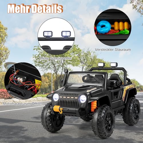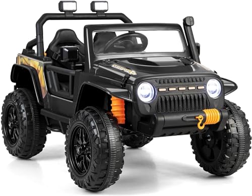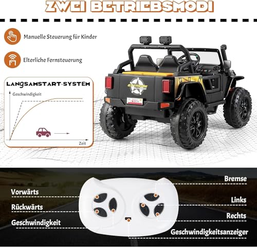 Reales Gemütsbewegung – Unser hochgefederter Kinder-Geländewagen ist mit Front- und Rückscheinwerfern, einem simulierten Armaturenbrett mit Musikfunktion und Autoschlüsseln, Rückspiegeln und einem Volant ausgestattet, die zusammen ein umfassendes und realistisches Fahrerlebnis kultivieren.