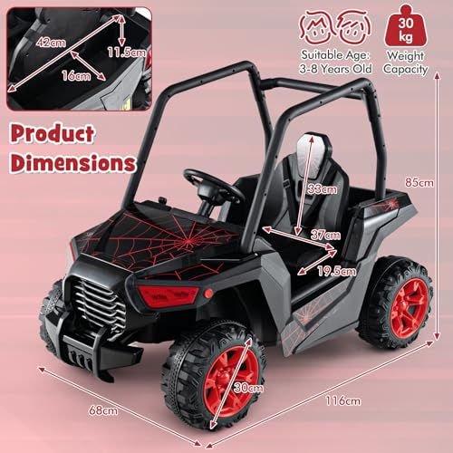 Guter Begleiter für Kinder – Das Kinder Elektroauto hat ein farbenfrohes und stilvolles Aussehen und seine Abmessungen sind 116 x 68 x 85 cm (L x B x H), das für Kinder ab 3 Jahren attraktiv ist. Kinder können bekannt als den Fahrspaß spüren und während des Wachstums ihres Kindes ihre Kraft, Ausdauer und Absprache tauschen!