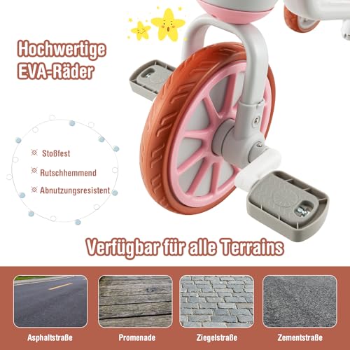 Geringes Produktgewicht – Unterstützt durch den robusten und wohl leichten Karbonstahlrahmen ist dieses Laufrad für Kleinkinder robust und hält bis zu 30 kg, ist dessen ungeachtet mit einem Gewicht von demgegenüber 3,5 kg nicht schwer. Und die Premium-EVA-Räder machen dieses Dreirad sowohl für den Innen- als auch für den Außenbereich geeignet.