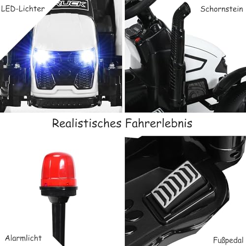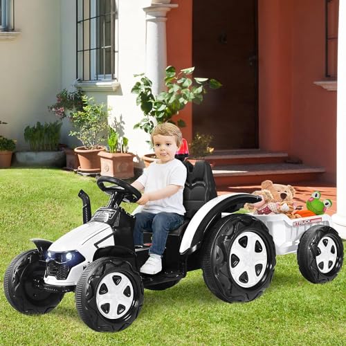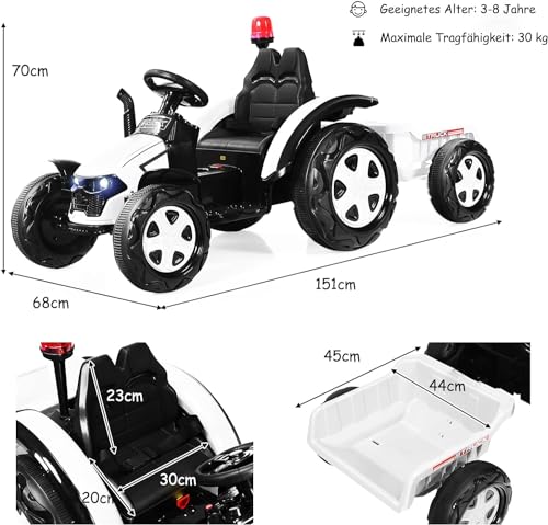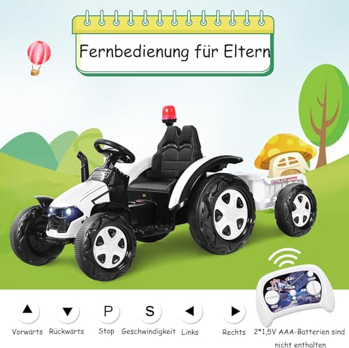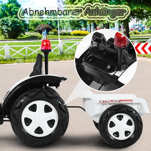 DREAMADE Elektro Traktor für Kinder, Kinder Traktor elektrisch mit abnehmbarem Anhänger & Fernbedienung, Trettraktor mit LED Lichtern, Musik, Hupe & USB, für Kinder ab 3 Jahre (Weiß)