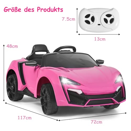 DREAMADE Elektroauto für Kinder, 12V Kinderfahrzeug mit 2,4G Fernbedienung, LED-Scheinwerfer, Musik & MP3-/USB-Player, Elektrofahrzeuge, Elektro Auto für Kinder ab 3 Jahren, Rosa