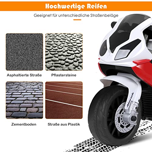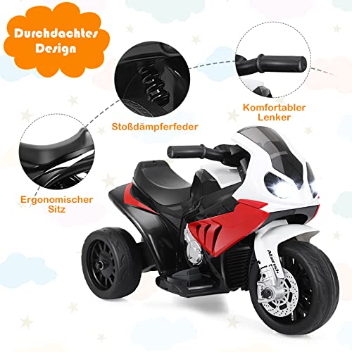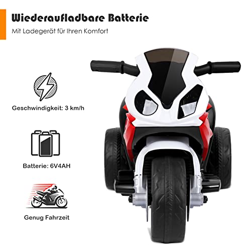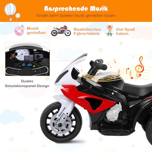 DREAMADE Kinder Elektro Motorrad, 6V Kindermotorrad Elektrisch mit Musik & Licht & Hupe & Stützrädern, 3 km/h, Elektro-Dreirad Elektromotorrad für Kinder 18-36 Monaten (Rot)