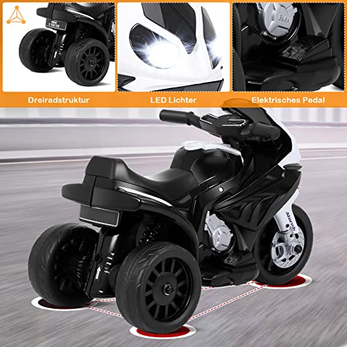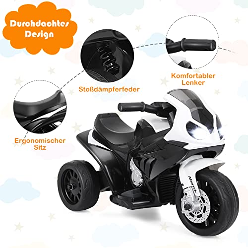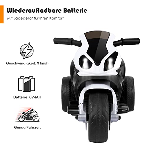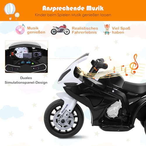 DREAMADE Kinder Elektro Motorrad, 6V Kindermotorrad Elektrisch mit Musik & Licht & Hupe & Stützrädern, 3 km/h, Elektro-Dreirad Elektromotorrad für Kinder 18-36 Monaten (Schwarz)