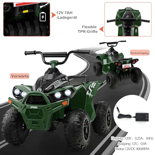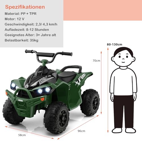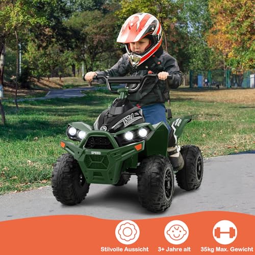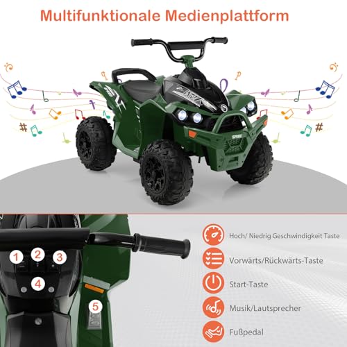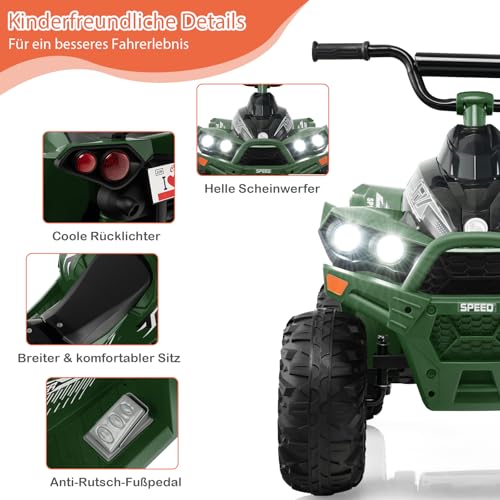 DREAMADE Kinderquad ATV, 12V Elektroquad mit LED-Lichtern, Hupe, Musik & Ladegerät, 2,15-4,3 km/h, Elektrofahrzeug für Kinder 3-8 Jahre, bis 35kg (Grün)