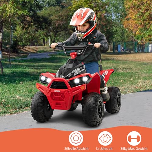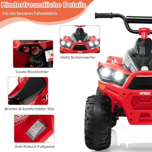 DREAMADE Kinderquad ATV, 12V Elektroquad mit LED-Lichtern, Hupe, Musik & Ladegerät, 2,15-4,3 km/h, Elektrofahrzeug für Kinder 3-8 Jahre, bis 35kg (Rot)