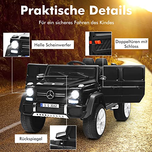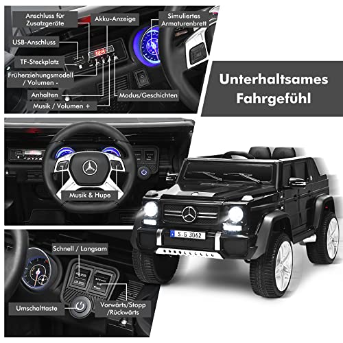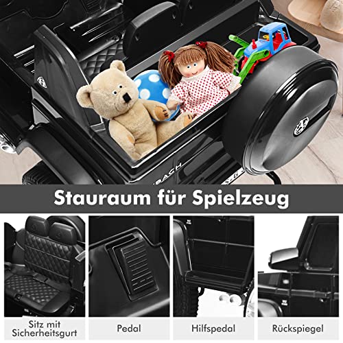 Angenehme Erfahrung & Exquisite Details- Sie können USB-, aux- und TF-Schnittstellen verwenden, um Musik herunterzuladen und abzuspielen. Doppelte Tür, Horn-Sound-Effekt und LED-Leuchten können das Erlebnis realer und angenehmer machen. Die Aufbewahrungsbox auf der Abseite des Autos kann auch Kinderspielzeug deponieren.