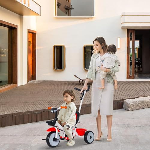 【Geeignet für Kinder jeden Alters】 Das Babydreirad hat 2 Modi, der Schiebemodus eignet sich zum Schieben durch Eltern, das Baby kann auf dem Sitz Abbrummen und von den Eltern geschoben werden, um den Kinderwagen zu schieben, es ist geeignet, das Baby auf einen Spaziergang mitzunehmen, und das Baby hat eine bessere Sicht auf die Außenwelt.
