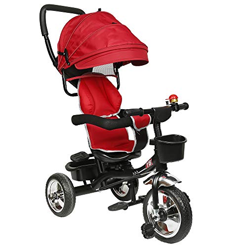 Dreirad für Babys, mitwachsend, mit Glocke und Rückspiegel, Trycicle mitwachsend, für Kinder von 1 bis 5 Jahren (rot)