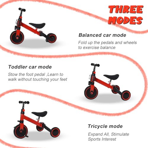 3-in-1-Design: Das Dreirad verwandelt sich in ein Laufrad oder einen Kinderwagen, perfekt für die Entwicklung Ihres Kindes von 18 Monaten bis 4 Jahren