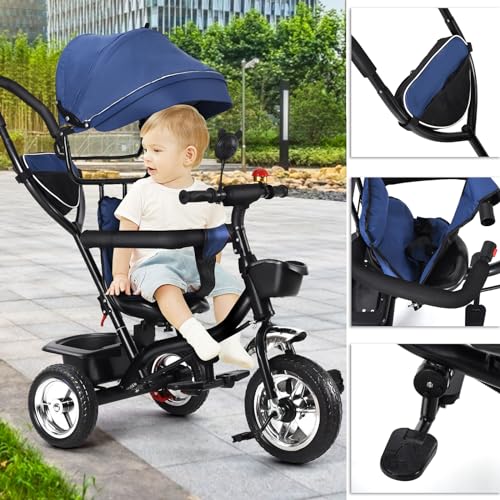 Fun Riding Details: Jingle Bells (stimulieren den Gehörsinn des Babys) + abgerundete Spiegel (ackern die Beobachtung) + abnehmbares Spielzeuglenkrad, erkunden Sie die Welt während des Spielens.