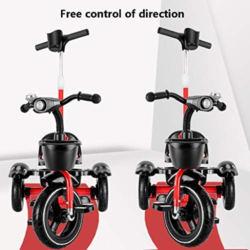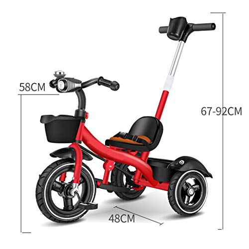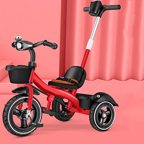 Dreirad Trike Kinder Trikes Pedal Autos Kinder Dreirad mit abnehmbarer Länge Eltern Schiebegriff für 1-6 Jahre alte Jungen Mädchen Faltbar Einstellbar Bequem (Farbe: Rosa) (Rot)