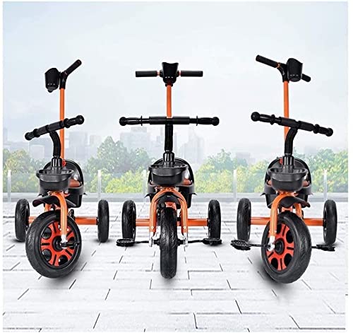 Robuste Kinder trike aus Metall mit Bar zum Drücken und Lenken. Das Dreirad kommt mit mehreren Funktionen. Sie können den Lenker keinen Finger krumm machen oder die Fußstütze anpassen.