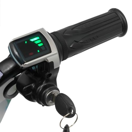 ★Einstellbare Geschwindigkeit: Sie können die Geschwindigkeit im Phase von 10-20km/h (3 Gänge) über die Geschwindigkeitskontrolltaste einstellen und dann den Griff drehen, um die Fahrgeschwindigkeit zu abklären, was einfach und belastbar zu bedienen ist.