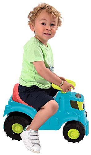 Die Räder sind denen eines echten Traktors nachempfunden und erlauben dank des groben Profils optimale Rutschfestigkeit im Garten. Unter dem Sitz befindet sich ein kleines Staufach für das Lieblingsspielzeug des Kindes. Das praktische Design in bunten Farben erlaubt so fantasievolle Ereignis im Garten und auf Tour!