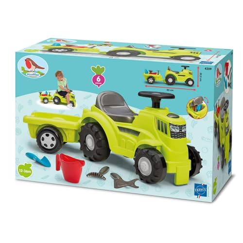 Ecoiffier Spielzeug 4359 – Rutschauto Traktor mit Anhänger 85 cm und Zubehör – Spiel Pein Air – von 12 bis 36 Monaten