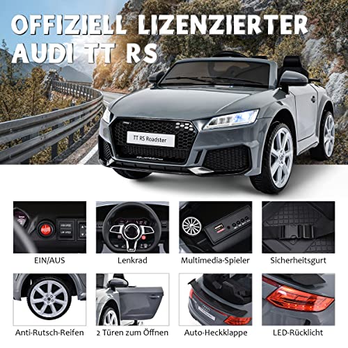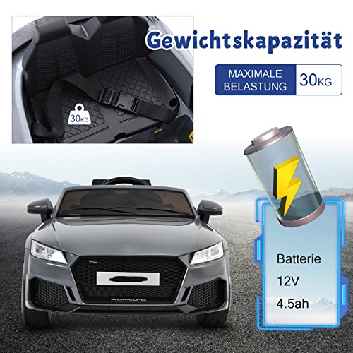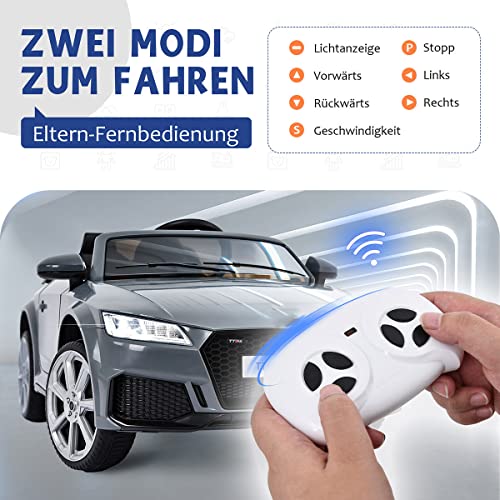 Elektroauto Mit Fernbedienung,12V Elektro-Kinderauto Mit 2×30W Motoren,Mit Musik & Hupe,3-5Km/H Led-Lichter,FüR Kinder Von 3-6 Jahre,Belastbarkeit 30Kg,Grey