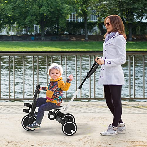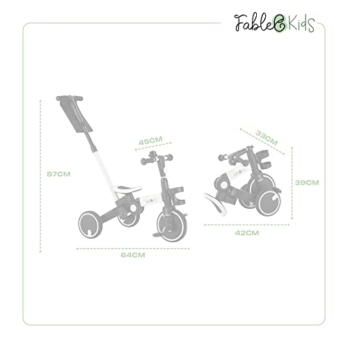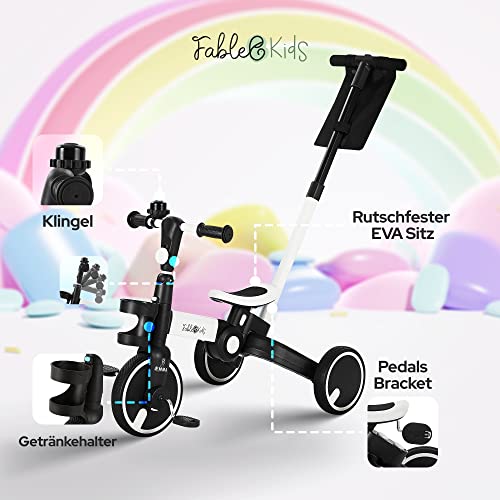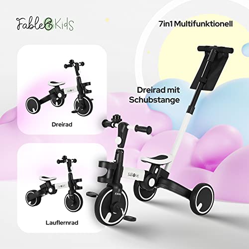 FableKids Dreirad 7in1 Kinderdreirad Laufrad Kinder Lenkstange Fahrrad Baby Kinderwagen | Elternlenkung |Klappbar | Becherhalter | ab 18 Monaten | Klingel | Weiß, (FA-HE-KT3Y)