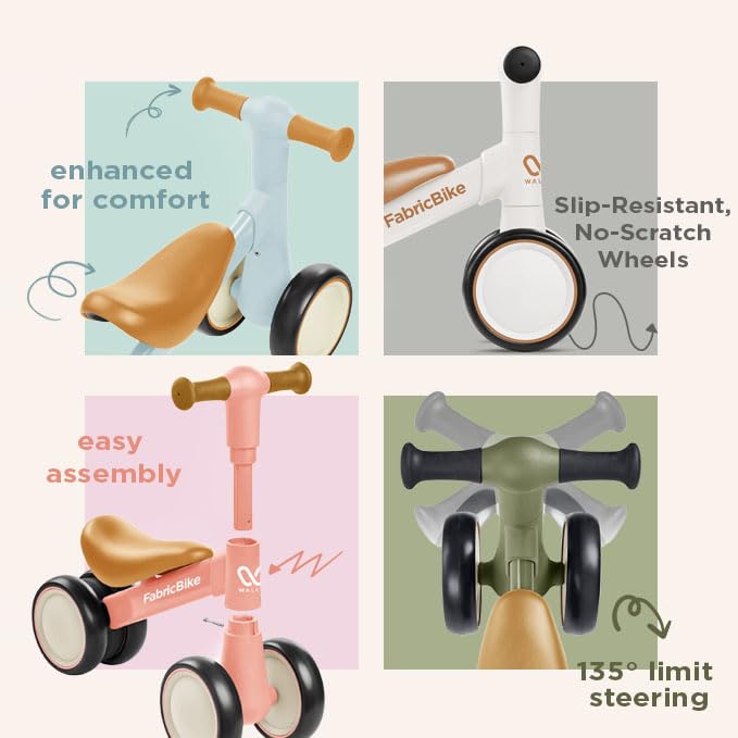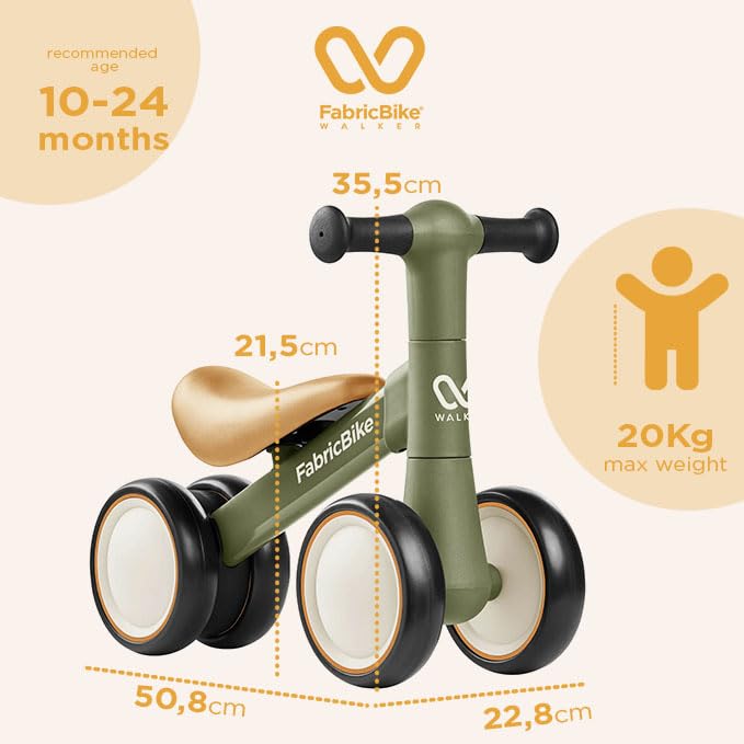 🦖 Ergonomisches und sicheres Design: Das Fabricbike Walker Fahrrad ohne Pedale wurde speziell anstatt Babys und Kleinkinder entwickelt und verfügt über einen ergonomischen Sitz und rutschfeste Lenker, die einen sicheren und bequemen Halt gewährleisten. Abgerundete Kanten und das Abwesenheit von Kleinteilen eliminieren das Verletzungsrisiko.