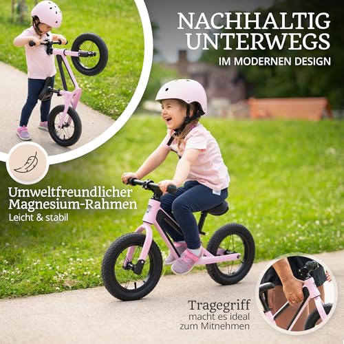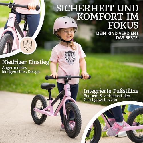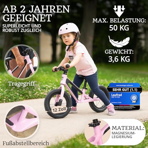 FAST N FUN Laufrad ab 2 Jahre mit Kinderhelm im Set | Ultraleicht mit Tragegriff, Magnesiumrahmen, 12 Zoll Räder, Fußstütze und Ergonomischer höhenverstellbarer Sitz | Outdoor Balance Bike