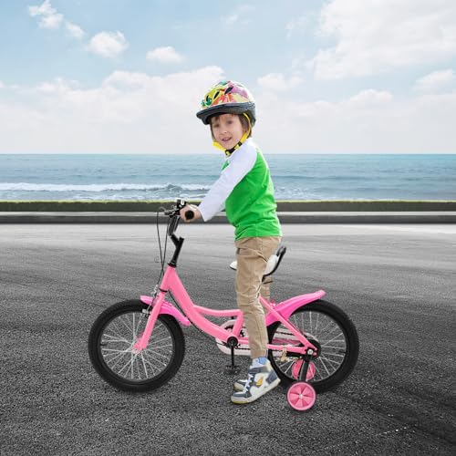 【Sicheres Radfahren】Die verdickten und verschleißfesten Gummireifen können leicht mit verschiedenen Straßenbelägen beenden. Das großkörnige Profil ist stoßdämpfend und rutschfest. Das Fahrrad ist mit zwei Hilfsrädern ausgestattet, um das Gleichgewicht während der Fahrt zu halten und einen Überschlag effektiv zu verhüten.