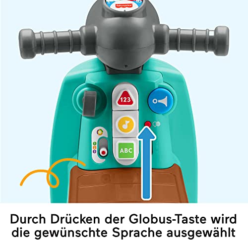 Die 3 geformten Knöpfe können gedrückt, die Hupe“ betätigt werden oder die Kinder können einfach mit dem Roller umherfahren, um die über 50 Lieder, Geräusche und Sätze zu puschen