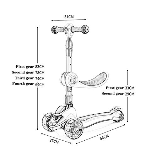 4 Höhenverstellungen: Dieser Roller ist mit 4 Höhenverstellungen ausgebildet, die im Rahmen die Höhe des Kindes konzertiert werden können, was bedeutet, dass der dreirädrige Roller Ihr Heranwachsender für eine längere Zeit begleiten wird.