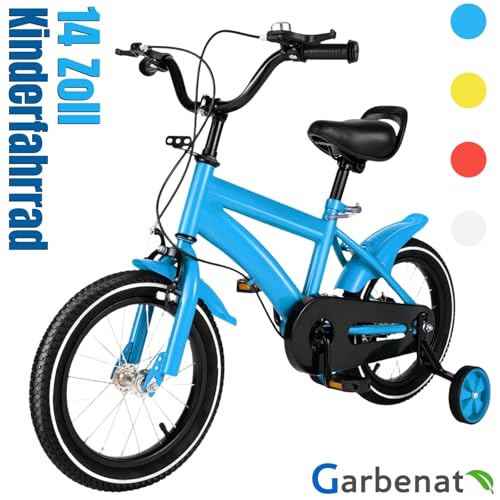 Garbenat 14 Zoll Kinderfahrrad mit Stützrädern Upgraded Kinder Fahrrad für ab 3-6 Jahre HöHenverstellbar Kinderfahrrad für Jungen & Mädchen Jugend Fahrrad für Schulung Outdoor Reiten