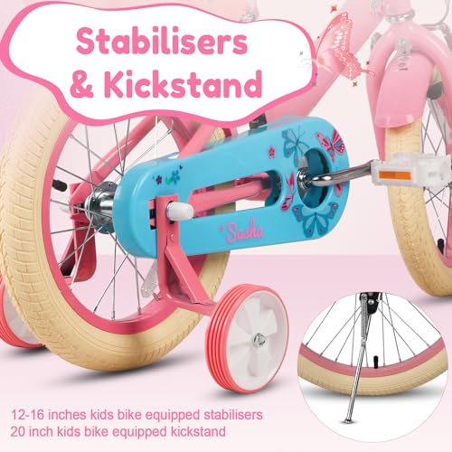 Glerc Sasha 12 14 16 20 Zoll Kinderfahrrad für 2-12 jährige Mädchen im Retro-Vintage-Stil mit Puppenfahrradsitz