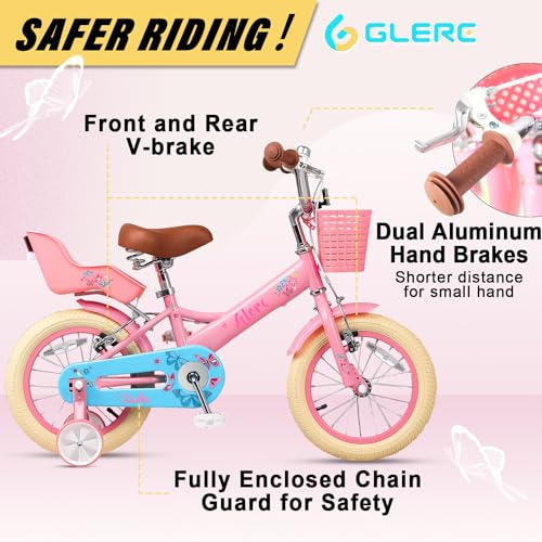 Ihre Kleinen werden mit Glerc Tretlagerschaltung eine sanftere Fahrt genießen, mit dem Bremshebel können kleine Fahrer effizient bremsen. Die Höhe des weichen Sattels und des stabilen Lenkers lässt sich schnell einstellen. Abnehmbare Trainingsräder sind im Lieferumfang enthalten.
