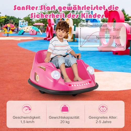 ✨360-Abstufung-Drehung: Dieses elektrische Bumperauto bietet eine 360-Abstufung-Drehungsfunktion, die es Ihrem Knirps ermöglicht, in alle Richtungen zu fahren und dabei jede Betrag Spaß verkäuflich. Die langsame Startfunktion sorgt für eine sichere und aufregende Fahrt für Ihr kleines Knirps.