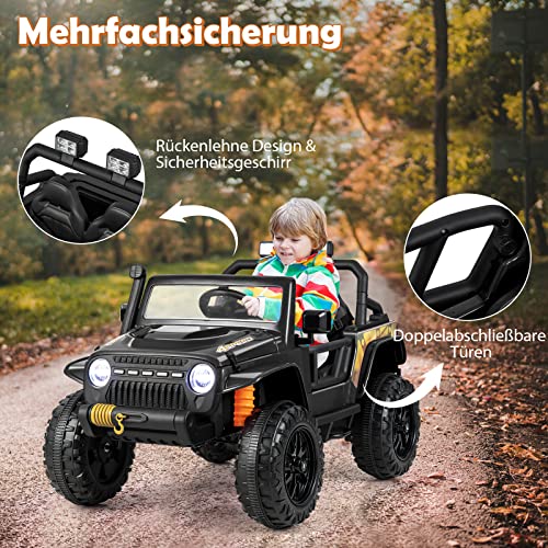 🚙Realistisches Fahrgefühl: Um Kindern ein realistisches Fahrerlebnis zu bieten, ist unser Elektrofahrzeuge schlüsselaktiviert. Außerdem verfügt es über Musik, eine Hupe, LED-Lichter (benötigt 4 AAA-Batterien) und vieles mehr. Bluetooth und USB ermöglichen den einfachen Anschluss an Handys, um Radio,Kindergeschichten zu hören, und viele andere Organisieren der Unterhaltung zu genießen.