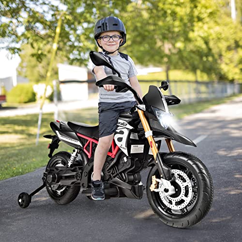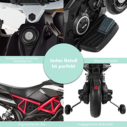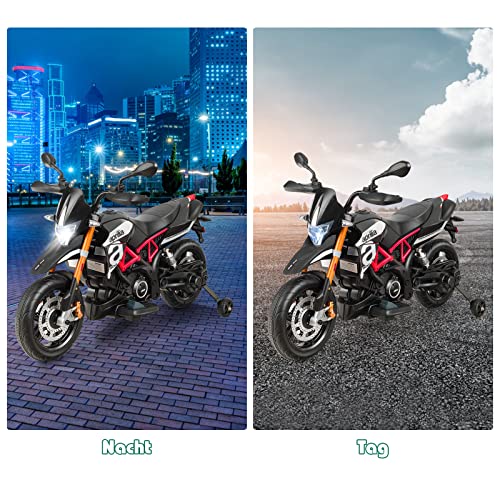 GOPLUS 12V Kinder Elektro-Motorrad mit Schweinwerfer/Musik, Kindermotorrad mit Stützrädern, Elektroauto, Kinderwagen…