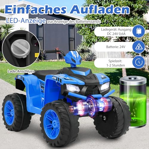 🏁Einfaches Laden & Überwachen: Halten Sie die Spielzeit unterbrechungsfrei mit dem nahtlosen Ladesystem, das das 24V Elektro-Auto für bis zu 2 Stunden betreibt. Überwachen Sie den Batteriestand einfach mit der LED-Anzeige für rechtzeitige Aufladungen.