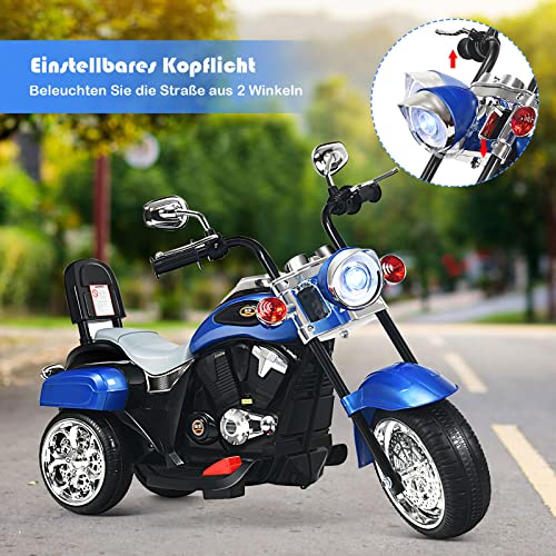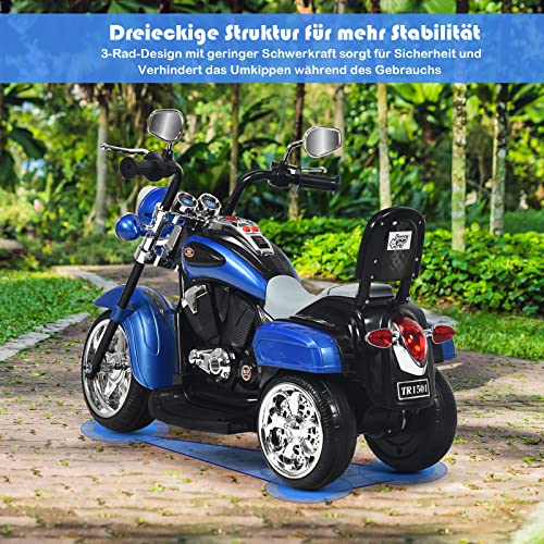 GOPLUS 6V Elektromotorrad für Kinder, Dreirad Kindermotorrad mit Vor-und Rückwärtsschalter, Elektrisches Motorrad, Mortorcycle, Elektrofahrzeug für Kinder ab 3 Jahre (Blau)