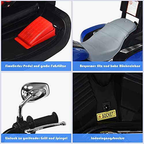 🏍️Multifunktionen: Mit dem Vor- und Rückwärtsschalter und dem Fußpedal kann das Motorrad sich vorwärts und nachwärts fahren. Dank dem begrenzten Lenkerwinkel von 45° und stabile drei Räder gewährleisten ein sicheres Fahren für Ihr Nachfahre. Mit der Hube lässt Ihr Nachfahre sintemal des Fahrens mehr Spaß machen.