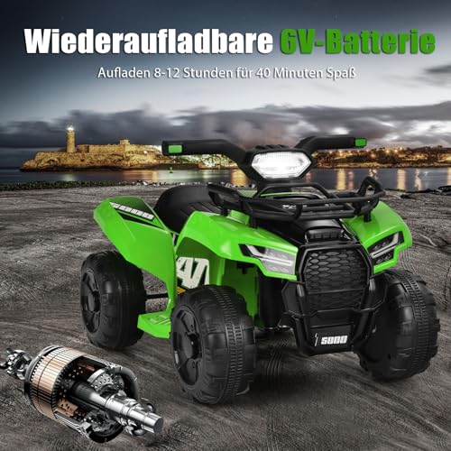 🎁Scheinwerfer & Musik: Unser Mini-ATV verfügt über einen hellen LED-Scheinwerfer, der Kindern helfen kann, an Orten mit schwachem Licht zu fahren. Darüber hinaus verfügt es über eine Hupe, um das Fahrerlebnis realistischer zu arrangieren. Und Musik kann Kindern helfen, sich während des Fahrens zu entspannen.