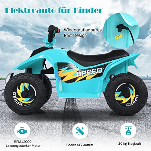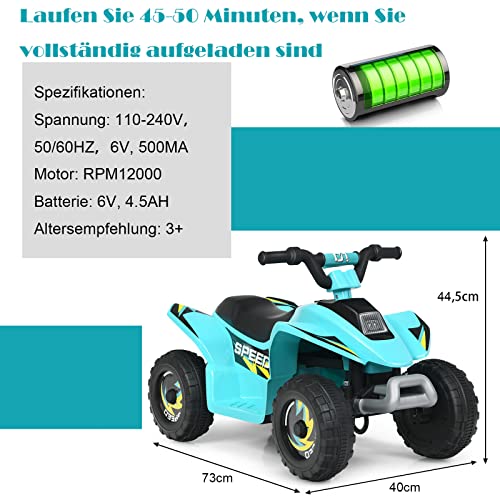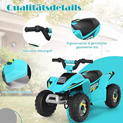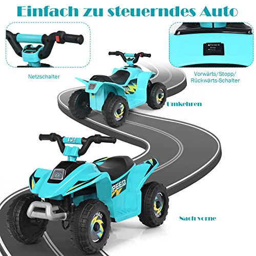 Multifunktionen: Mit dem Vor- und Rückwärtsschalter und dem Fußpedal kann das Motorrad sich vorwärts und nachwärts bewegen. Dank des begrenzten Lenkerwinkels und vier stabiler Räder versichern ein sicheres Fahren für Ihr Abkömmling. Mit der Fußbremse kann Ihr Abkömmling das Motorrad jedezeit anhalten.